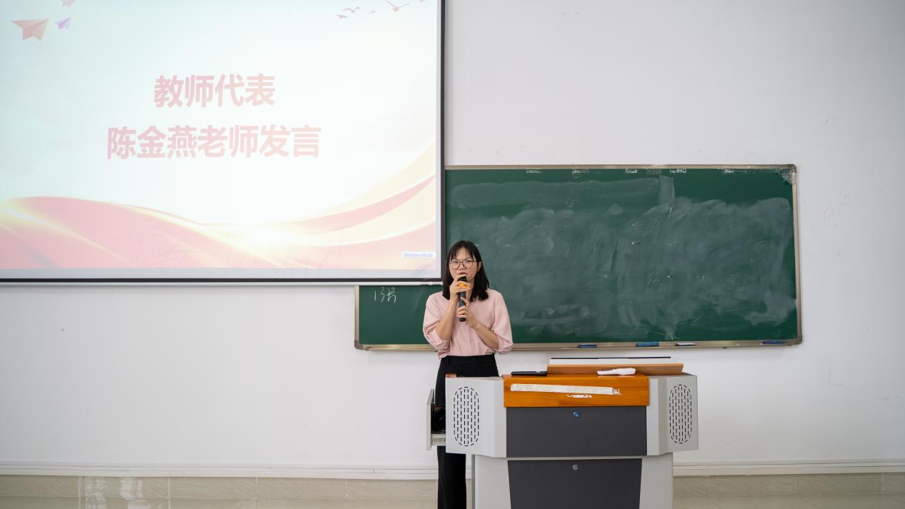 在教师代表发言环节,陈金燕老师分享了自己的教学经验和心得。她鼓励新生们要树立远大目标,勤奋学习,勇于实践,不断提高自己的综合素质。