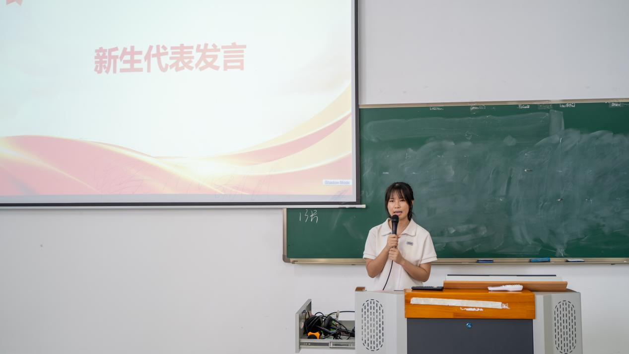 新生代表彭熠同学在发言中表示,将牢记师长的教诲,认真学习,积极向上,为实现自己的人生目标而努力拼搏。她的发言充分展现了新生们的朝气与活力。