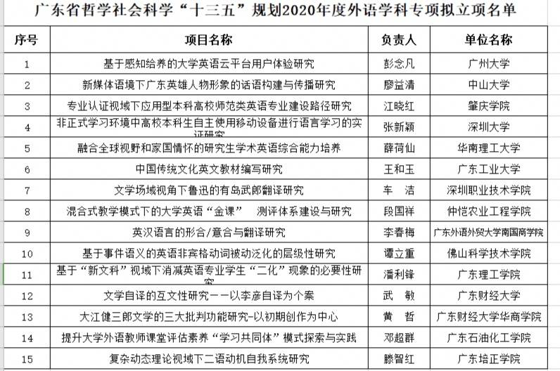 日前,广东省哲学社会科学“十三五”规划项目公布,我校williamhill威廉希尔黄哲老师获批广东省哲学社会科学“十三五”规划2020年度外语学科专项立项。