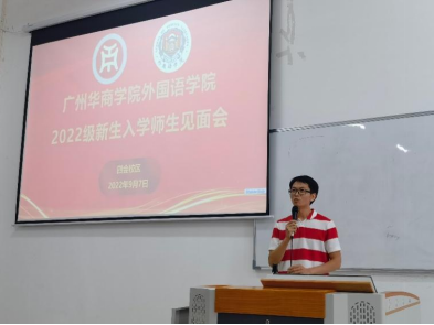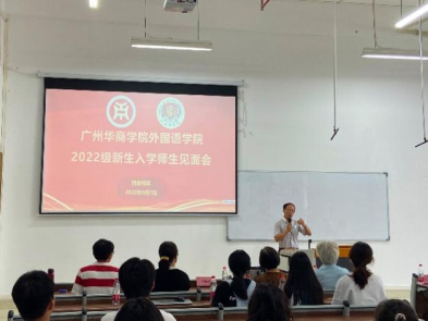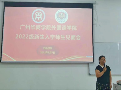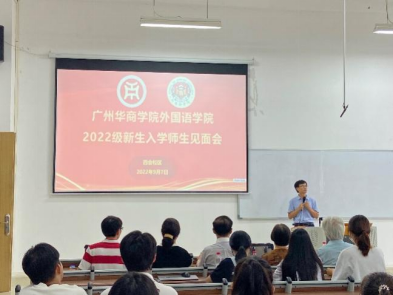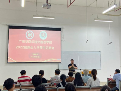 2022年9月7日上午10时,williamhill威廉希尔在williamhill威廉希尔四会校区6号楼202教室召开2022级新生入学师生见面会,院长王琢教授、副院长张丽教授、党委副书记兼副院长陈少鸿老师、日语系主任李旭光教授、商务英语系主任周竹南教授、翻译系主任杨润秀教授、英语系主任刘阳副教授、大学英语部主任贺学贵副教授、学工办副主任何顺发老师、四会校区辅导员陈禄汉老师出席本次见面会,大会由学工办副主任何顺发老师主持。