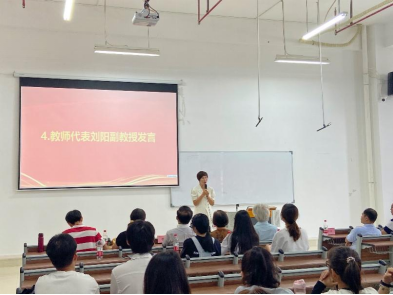 商务英语系主任周竹南教授强调了学习和生活上的自律,专业的人要有专业的范,对同学们提出了很大的期盼,希望同学们利用好四年的黄金时间,培养好自身的核心竞争力,为国家、为民族、为自己而努力奋斗。