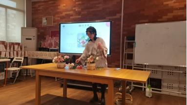 本次活动邀请了专业的花艺老师为女教职工讲解花艺知识,花艺老师主要介绍了鲜花的品种、花卉的搭配、鲜花购买和养护的注意事项,并进行了插花示范。