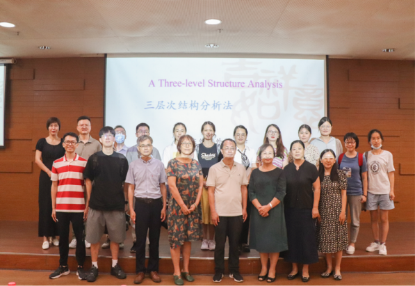 最后,杜秀君副院长对讲座进行了总结,表示韩教授讲的三层次结构分析非常精彩,并希望这次讲座能激发老师们和同学们对语言学的浓厚兴趣,后续也能加入相应的研究队伍,做得更精,做得更细,畅游在语言学的王国里,体验语言的魅力!本次讲座在合照留念后圆满结束。
