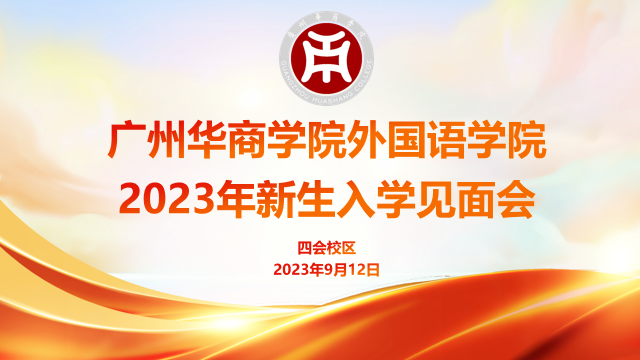 2023年9月12日上午10时,williamhill威廉希尔在williamhill威廉希尔四会校区八号楼109教室召开2023年新生入学师生见面会,院长王琢教授、副院长张丽教授、副院长杜秀君教授、党委副书记兼副院长陈少鸿老师、院长助理刘阳副教授、英语系主任杨润秀教授、日语系主任李旭光教授、翻译系主任贾秀海教授、学工办副主任何顺发老师、辅导员谢超老师和陈禄汉老师出席本次见面会,大会由何顺发老师主持。