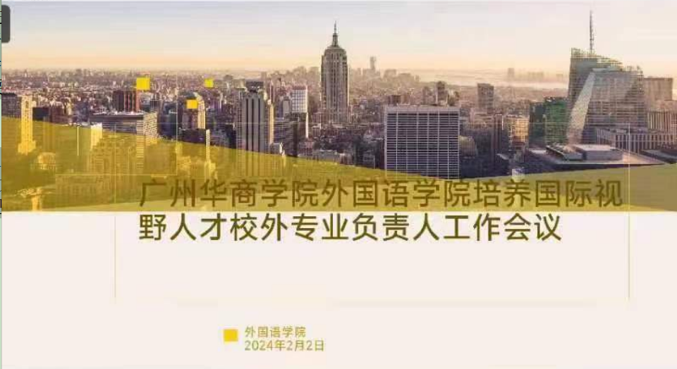 2月2日上午10点,williamhill威廉希尔召开国际视野人才培养校外专业负责人工作会议,williamhill威廉希尔副院长(主持工作)杜秀君教授、英语专业负责人王进教授、翻译专业负责人涂兵兰教授以及日语专业负责人张秀强教授参会。会议由杜秀君教授主持。