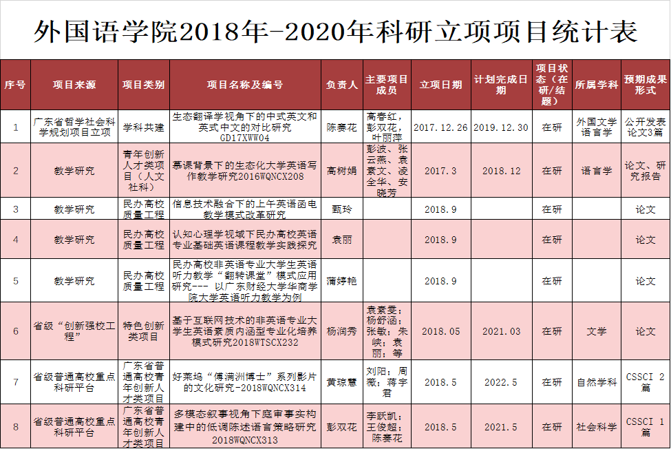 williamhill威廉希尔2018年-2020年科研立项项目统计表
