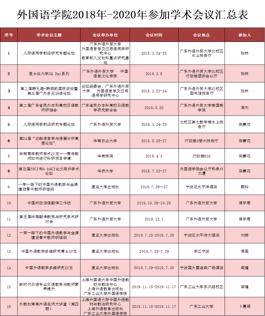 williamhill威廉希尔2018年-2020年参加学术会议汇总表