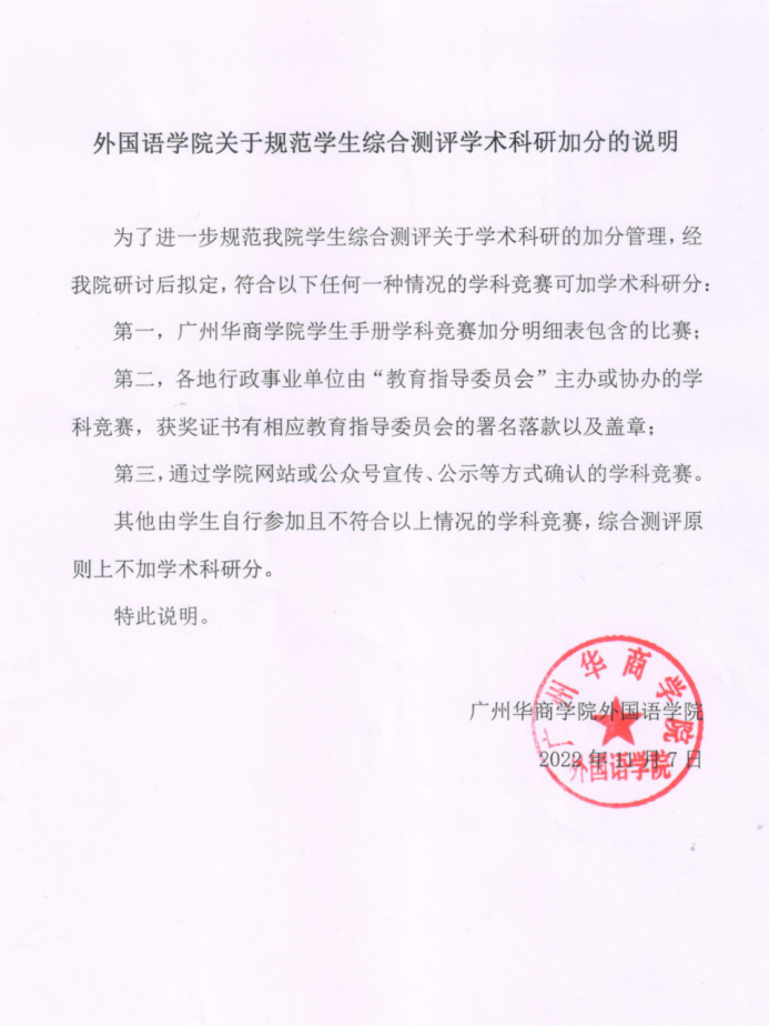 为了进一步规范williamhill威廉希尔学生综合测评关于学术科研的加分管理,经williamhill威廉希尔研讨后拟定,符合以下任何一种情况的学科竞赛可加学术科研分: