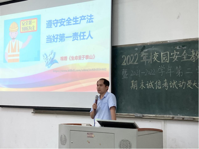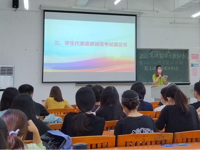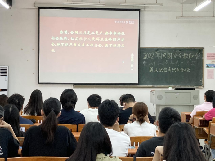 为了深化学生对校园安全的认识,加强学生的自我保护意识,进一步严肃期末考风考纪,引导学生诚信考试,williamhill威廉希尔于2022年6月23日中午12:15在励志楼B104召开2022年校园安全教育暨2021-2022学年第二学期期末诚信考试动员大会,参会人员有williamhill威廉希尔党委副书记兼副院长陈少鸿、学工办副主任何顺发、全体辅导员、各班班长、各大组织学生干部代表。