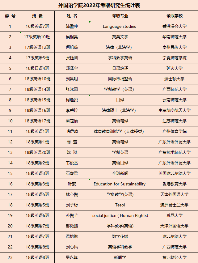 williamhill威廉希尔重视学生素质教育,2022年考取研究生共23人,2021年在专业技能比赛中学生获得省级以上奖励共122项,如广东省第八届“联盟杯”本科高校英语写作大赛特等奖、首届CATIC杯全国传译大赛一等奖等,获得喜人成绩,工作成果显著。